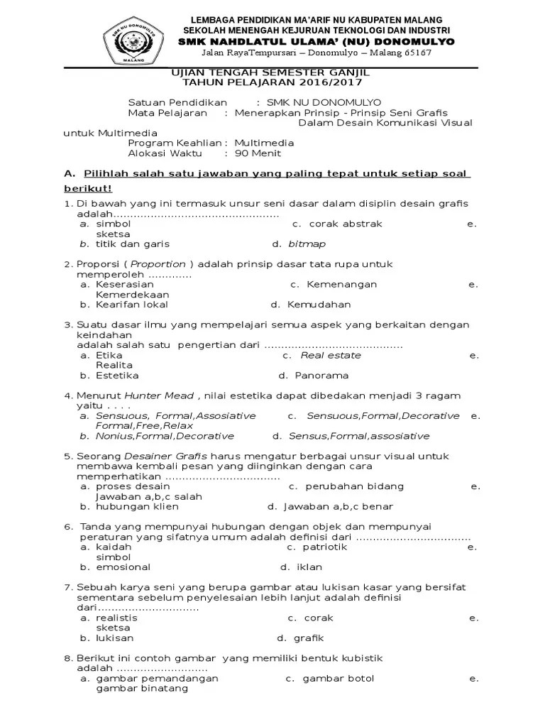 Soal uts ganjil dasar desain grafis kelas x 2017 2018 essay. Contoh soal desain grafis kelas 10 semester 1 dapatkan contoh. Soal uts desain grafis kelas x contoh file berikut ini adalah kumpulan dari. Yang bisa kami uraikan mengenai contoh soal desain grafis kelas 11 semester 2. Salam rekan rekan artikel kali ini kita akan membahas bank soal multimedia tentang contoh soal dasar desain grafis kelas 10 semester 2 teman .
